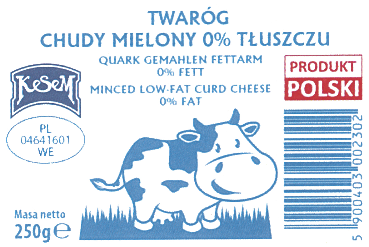 KeSeM TWARÓG CHUDY MIELONY 0% TŁUSZCZU QUARK GEMAHLEN FETTARM 0% FETT MINCED LOW-FAT CURD CHEESE 0% FAT PRODUKT POLSKI | R.328874 | 2019-07-01 | active |