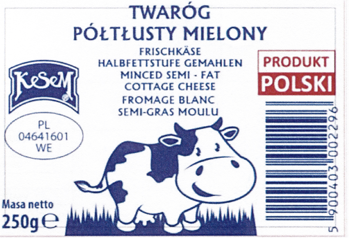 KeSeM TWARÓG PÓŁTŁUSTY MIELONY FRISCHKÄSE HALBFETTSTUFE GEMAHLEN MINCED SEMI-FAT COTTAGE CHEESE FROMAGE BLANC SEMI-GRAS MOULU PRODUKT POLSKI | R.351442 | 2019-09-09 | active | |