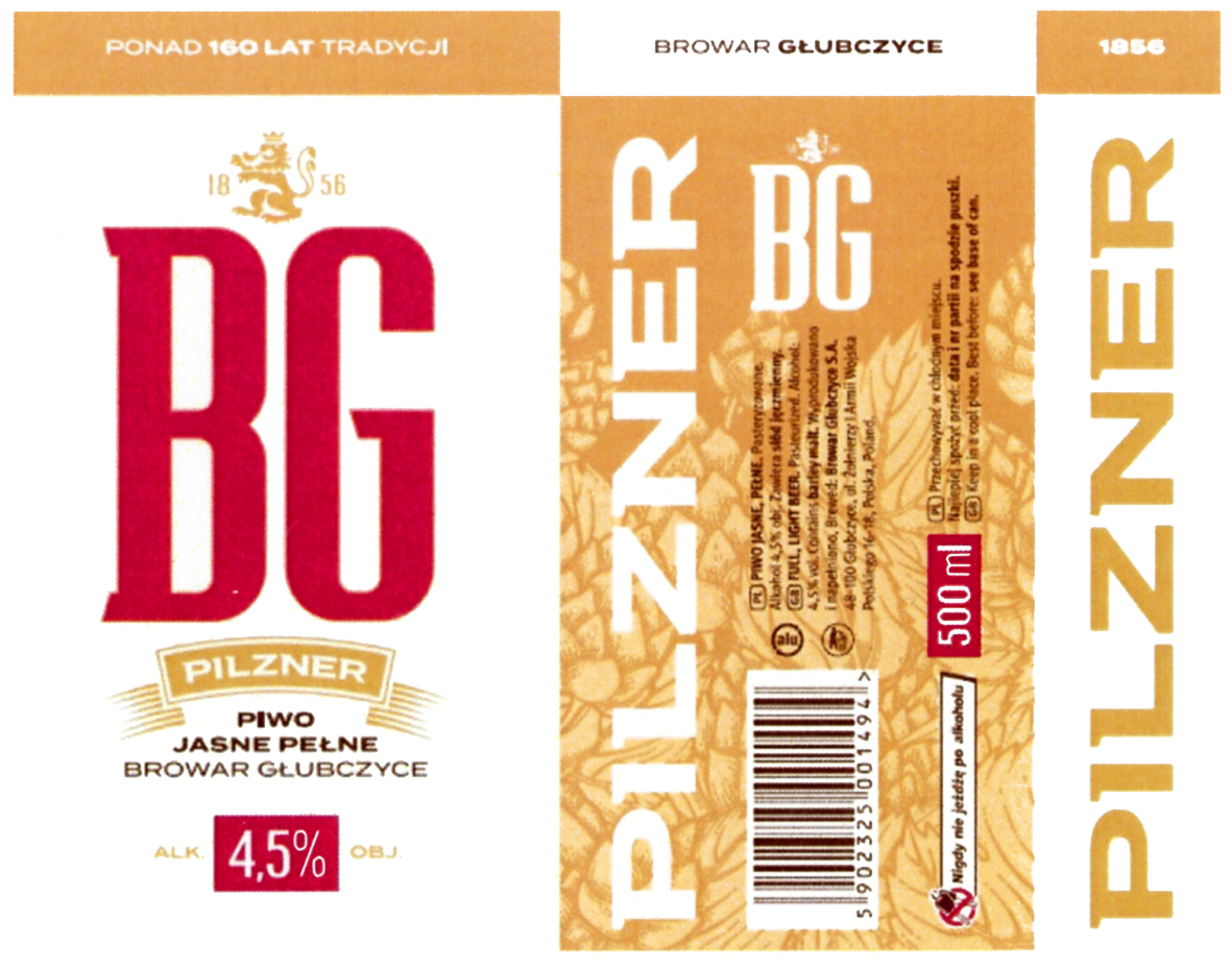 PONAD 160 LAT TRADYCJI 1856 BG PILZNER PIWO JASNE PEŁNE BROWAR GŁUBCZYCE | R.333510 | 2020-03-31 | aktywny | |