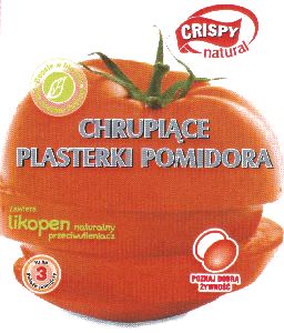 CHRUPIĄCE PLASTERKI POMIDORA cn CRISPY NATURAL Zawiera likopen naturalny przeciwutleniacz Bogate w błonnik Bez dodatku tłuszczu tu są 3 świeże pomidory | R.386379 | 2025-03-03 | aktywny | |