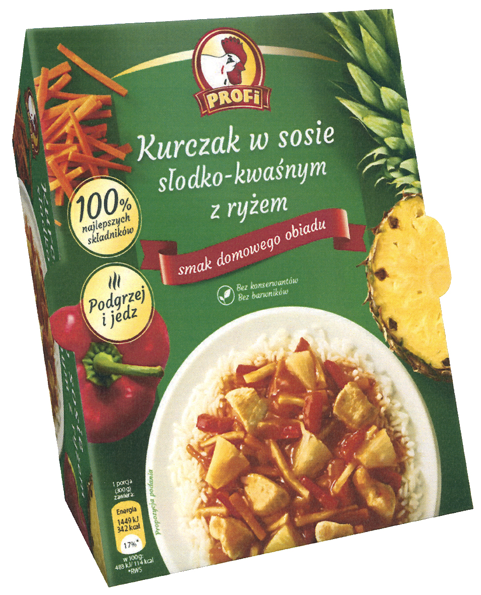 PROFi Kurczak w sosie słodko-kwaśnym z ryżem smak domowego obiadu 100% najlepszych składników Podgrzej i jedz Bez konserwantów Bez barwników | R.325786 | 2019-02-25 | aktywny | |