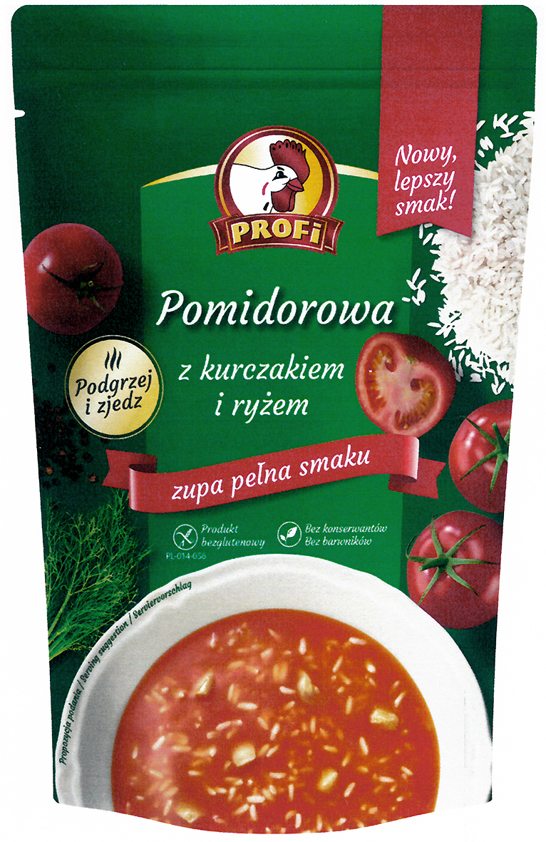 PROFi Nowy, lepszy smak! Pomidorowa z kurczakiem i ryżem zupa pełna smaku Podgrzej i zjedz Produkt bezglutenowy Bez konserwantów Bez barwników | R.327553 | 2019-06-03 | aktywny | |