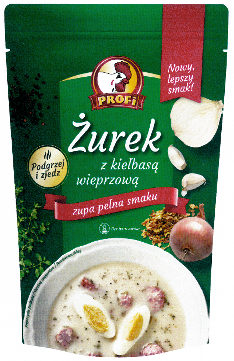 PROFi Żurek z kiełbasą wieprzową Nowy, lepszy smak! Podgrzej i zjedz zupa pełna smaku Bez barwników | R.328301 | 2019-06-03 | aktywny | |